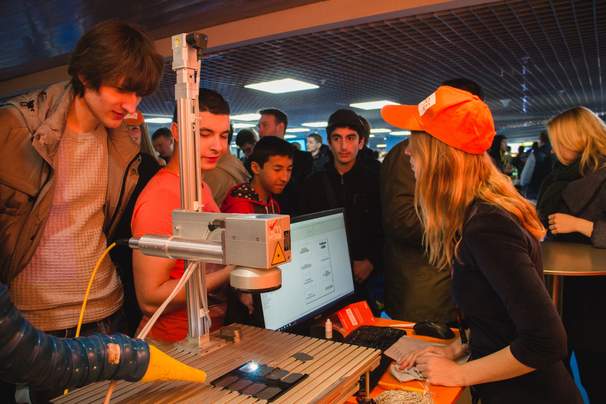 Для ускорения выполнения гравировок прием заказов выполнялся через сканирование QR-кода, который переводил человека на специальную страницу. На ней пользователь может выбрать шрифт и указать надпись для нанесения. После этого он подходит к оператору с уникальный номером заявки и по нему оператор лазера видит все данные. Такой подход позволяет "выжать" до 60 гравировок с одной лазерной установки в час.