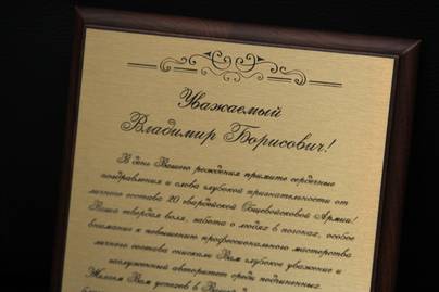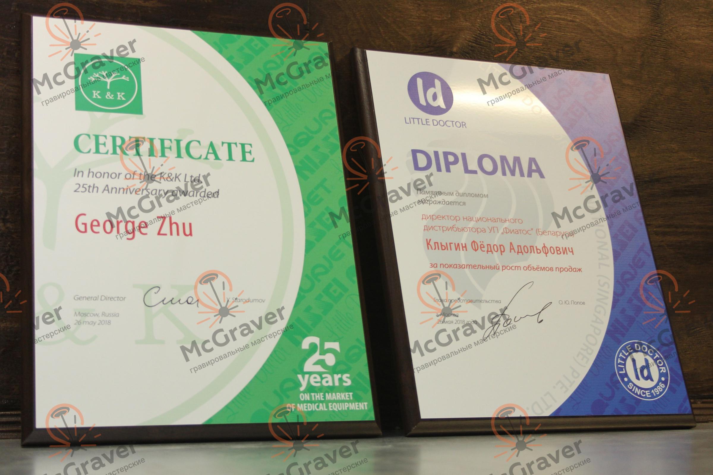 | Типовой диплом 30*20 алюминий с печатью | 3800 | 3-4 часа |