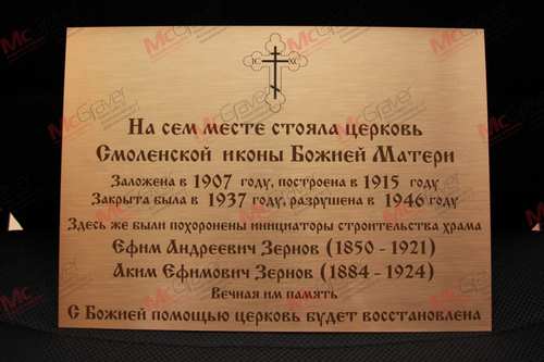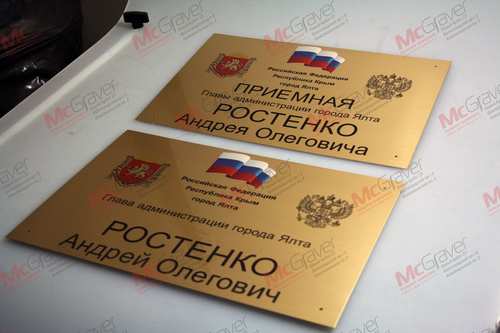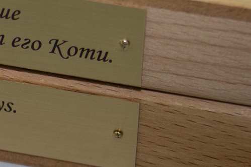 Специально обработанная защитными средствами латунь позволяет размещать табличку на открытом воздухе. Подходит для шильдиков и офисных табличек. Цвет гравировки темно-коричневый, при размещении в помещении возможно чернение.